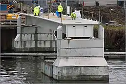 The Cardiff Bay side of the bridge will temporarily be diverted through Victoria Wharf whilst a nearby building project is completed.[9]
