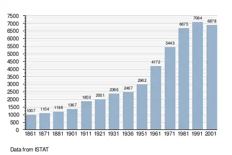 - ↑ "Popolazione Residente al 1° Gennaio 2018". Italian National Institute of Statistics. Retrieved 16 March 2019.