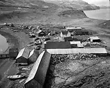 Popof Island first appeared as a separate political entity on the 1890 U.S. Census with a population of 146. Of these, 135 were White, 7 were Creole (Mixed Russian & Native), 3 were Asian and 1 was Native.[4] This included 3 settlements on the island: Pirate Cove (a codfishing Station), which had previously appeared on the 1880 census separately with 7 residents (all White), located on the northeast side of the island;[5] Red Cove (a fishing station) on the south side of the island; and Sand Point Station on the northwestern side of the island. Census enumerators also counted all the ships that were docked at Pirate Cove (including schooners Trapper and Unga) and those at Sand Point (including schooners Alexandria, City of San Diego, James Hamilton, Kate and Annie, San Diego, C.N. Smart & C.H. White).