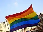 A six-band rainbow flag representing the LGBT community