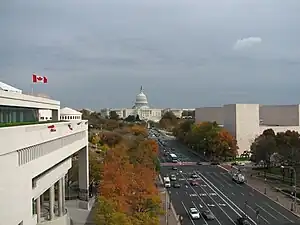 Pennsylvania Avenue as seen from the terrace of the Newseum next to the Canadian Embassy.