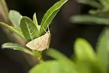 The caterpillars of Portentomorphini primarily feed on plants of the Phyllanthaceae family: Portentomorpha xanthialis feeds on Margaritaria nobilis, species of Hyalobathra are reported from Glochidion and Phyllanthus, Pioneabathra olesialis and Isocentris filalis from Flueggea, and Mabra eryxalis from Phyllanthus urinaria.[4][5][6][7] Several non-Phyllanthaceae hosts are known, such as Euphorbia virosa (Euphorbiaceae) and Sphaeranthus indicus (Asteraceae) for Isocentris, and Abrus precatorius (Fabaceae) and Helianthus annuus (Asteraceae) for Hyalobathra; furthermore, P. olesialis was reported from Solanum (Solanaceae), and Mabra eryxalis from rice (Poaceae).[6]