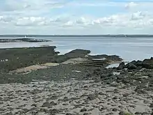 The Severn is noted for its extreme tidal range. This means that there are few safe crossing points for a ferry, the New Passage Ferry being the deeper channel downstream of the Dun Sand and upstream of the English Stones.[1] This passes between New Passage Pier in Gloucestershire and Black Rock in Monmouthshire, approximately the line of the Second Severn Crossing. The other crossing in the area is upstream at the Old Passage Ferry, from Aust to Beachley, approximately the line of the earlier Severn Bridge. This crossing goes from England to England, as it is still slightly upstream of the confluence with the Wye below Chepstow,[lower-roman 1] and so a crossing to here would still require traffic to cross the Wye on its way to Cardiff.