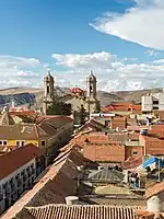 Potosí, known as Villa Imperial de Potosí in the colonial period, is the capital city and a municipality of the Department of Potosí in Bolivia. It is one of the highest cities in the world at a nominal 4,090 m (13,420 ft).[3] For centuries, it was the location of the Spanish colonial silver mint. A considerable amount of the city's colonial architecture has been preserved in the historic center of the city, which—along with the globally important Cerro Rico de Potosí—are part of a designated UNESCO World Heritage Site.