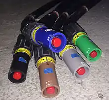 Powerlock connectors are available in colours to match wiring colour standards used in Europe, Australia and North America.[11] The mechanical keying is however independent of the colours, for example a blue connector intended for a neutral connection in Europe will not connect with a blue connector intended for live (phase) connection in North America.