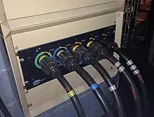 Powerlock is a range of single-pole electrical connectors used for temporary high-current, low-voltage (up to 1000 V AC) applications,[2] similar to but considered safer than camlock connectors. Originally developed by Litton Veam in the mid-1990s, VEAM Powerlock is now a brand of ITT Cannon. Compatible versions are also available from other manufacturers.[3]