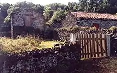 The primitive parochial church was destroyed completely by the eruption of the Cabeço do Fogo volcano on 24 April 1672.[3] At about one in the morning, a violent explosion awoke many of the residents, and forced them from their homes. Two lava flows escaped Cabeço do Fogo towards the north (Praia do Norte) and south (destroying the community of Ribeira do Cabo in Capelo).[3] The northern flow, after pausing to destroy Lameiros, reached Praia do Norte where it covered the parish in black rock, including many of the large tracts of arable land. Many of the residents of the northern coast abandoned the area, eventually resulting in the parish being incorporated into the neighboring parish (Capelo). According to Américo Costa (in Dicionário Corográfico) a large part of the inhabitants of both parishes (Capelo and Praia do Norte) were affected by the eruption; homes and farmlands in Ribeira do Cabo (Capelo), Lameiros and Praia do Norte were destroyed. A niche, located at the intersection to Norte Pequeno, currently marks the position of the old church. Some inhabitants returned gradually, planting vineyards and fruit trees and small agricultural farming developed on the higher elevations.