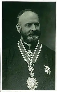 He helped in organizing and was a board member of the Lithuanian Catholic Academy of Science (he attempted to establish the academy in 1907, but it was organized only in 1922).[20] He organized the transfer of funds raised for a Catholic university to the new academy.[11] He became a true academic member of the academy in 1936.[20] In 1922, he proposed to build a church in Žaliakalnis neighborhood of Kaunas as a monument to Lithuania's independence. The idea was supported by Juozas Tumas-Vaižgantas, bishop Juozapas Skvireckas, and others and the construction of the Christ's Resurrection Church started in 1934.[21][22] He continued to contribute articles to the press: he edited daily Laisvė (Freedom) in 1921 and published articles in Rytas, Lietuva, Šaltinis, Tiesos Kelias, Kosmos.[6] In recognition of his contributions, he was awarded the Order of the Lithuanian Grand Duke Gediminas (2nd class) in 1928.[23]