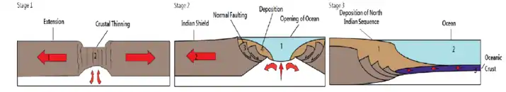 - 1 2 3 4 Brookfield, M.E (1993). "The Himalayan passive margin from Precambrian to Cretaceous times". Sedimentary Geology. 84 (1–4): 1–35. Bibcode:1993SedG...84....1B. doi:10.1016/0037-0738(93)90042-4.