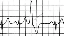 | A premature ventricular contraction marked by the arrow | |