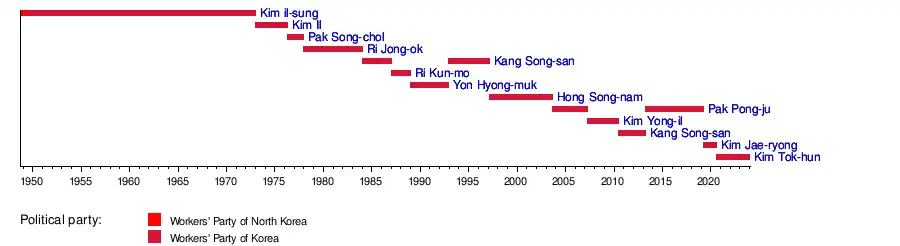 - ↑ "Chiefs of State and Cabinet Members of Foreign Governments: Korea, North - NDE". Central Intelligence Agency. 21 June 2018. Archived from the original on 4 October 2013. Retrieved 28 August 2018.