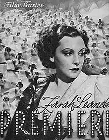 Premiere is a 1937 Austrian musical crime film directed by Géza von Bolváry and starring Zarah Leander, Attila Hörbiger, and Karl Martell. The wealthy backer of a Viennese musical revue is murdered on the first night of the show. It was Leander's first German language role after previously appearing in Swedish films.[1] On the basis of her performance in the film, Leander was signed by the German Major studio UFA after their major rival, Tobis, had decided she had insufficient star appeal.[2] Her next film To New Shores established Leander as the leading star in Germany.