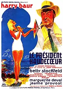 President Haudecoeur (French: Le président Haudecoeur) is a 1940 French comedy film directed by Jean Dréville and starring Harry Baur, Betty Stockfeld and Marguerite Deval.[1] It was shot at the Marseille Studios of Marcel Pagnol in Southern France. The film's sets were designed by the art director Roland Quignon.