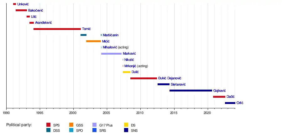 Vladimir OrlićIvica DačićMaja GojkovićNebojša StefanovićSlavica Đukić DejanovićOliver DulićMilutin MrkonjićTomislav NikolićPredrag MarkovićVojislav MihailovićNataša MićićDragan MaršićaninDragan TomićZoran LilićAleksandar BakočevićSlobodan Unković