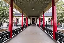 The Kirin Gate is a red gate situated on the north of the reception hall. This gate would open only if the president went through this place. The gate leads to the House of the Government Affairs, the original office building of the Chairman of the Nationalist Government.