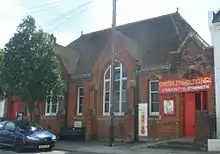 St Luke's Church (50°50′01″N 0°08′51″W / 50.833559°N 0.147597°W) occupies a "landmark"[31] position at the junction of Old Shoreham Road and Stanford Road in the south of Prestonville, near Seven Dials. This Anglican church was built in 1875 to the design of John Hill. Its Gothic Revival church hall on Exeter Street dates from 1884 and retains its original red-brick exterior.[13] The Church of the Good Shepherd (50°50′30″N 0°09′28″W / 50.841733°N 0.157902°W) is at the junction of Dyke Road and The Drove in the north of Prestonville. It was built between 1920 and 1922 and was designed by Edward Prioleau Warren. Both the church and the small brick walls surrounding it are Grade II-listed.[32][33] It is a brown-brick building in a late and "simple" interpretation of the Gothic Revival style. The tower and an extra bay to the nave were added in 1925–27,[34] and the church hall was opened by George Tryon, 1st Baron Tryon on 15 July 1936. The church was funded as a memorial to former Vicar of Preston Rev. Gerald Moor.[3] The Al-Quds Mosque (50°50′05″N 0°09′03″W / 50.834691°N 0.150736°W) was founded in the 1970s when a group of Muslims who were visiting the area donated money to fund an Islamic centre and mosque. The community bought a converted house which had been used as a nursery school.[35]