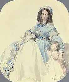 While staying with Queen Victoria in July 1851, Clémentine had to cut short her visit to return to Spain when news arrived that her sons' tutor "had gone off his head".[14] Victoria fretted that she would share Clémentine's fate and revolution would end the British monarchy, and feared what would happen to her children.[15]