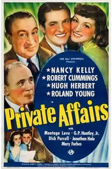 Private Affairs is a 1940 comedy film starring Nancy Kelly, with a supporting cast including Hugh Herbert, Roland Young, and Robert Cummings. The film was directed by Albert S. Rogell.