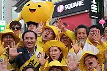JP criticizes the ultra-nationalist project led by the Japanese conservative government, but, unlike DPK, opposes excessive use of anti-Japanese sentiment in economics and diplomacy.[64] JP opposed DPK's anti-Japan diplomacy and PPP's anti-communist (anti-Nouth Korea) diplomacy.[65] However, JP is more sensitive to racism against Japanese people living in South Korea than DPK because he values political correctness, while diplomatically, he is more hawkish about Japan than DPK, which is also related to political correctness. For example, JP claims the 2015 Japan-South Korea Comfort Women Agreement as invalid, and JP criticized Moon Jae-in for saying the agreement was not invalid.[66]