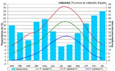The Continental Mediterranean climate is typical of Meseta Central, which is located in the province of Valladolid. It is similar to the typical Mediterranean but with characteristics of continental climates, of more extreme temperatures, although it does not go to be as different as to be classified separately. In addition this climate does not receive the influence of the sea, that is why the temperatures are the most extreme of Spain, with a lot of heat summers and winters quite cold with a swing of 18.5 .