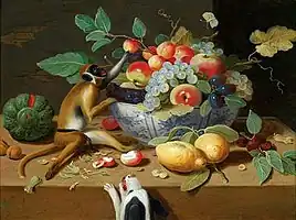 - ↑ Pseudo-Jan van Kessel II, Still life with fish, vegetables, flowers and two cats, auctioned at Hampel Kunstauktionen (München) on 24 September 2015, description at the Netherlands Institute for Art History site