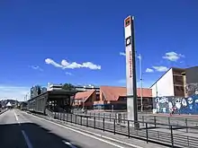 The simple station Puente Largo is part of the TransMilenio mass-transit system of Bogotá, Colombia, which opened in the year 2000.