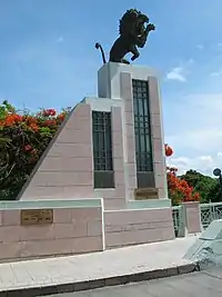 An 1818 map[lower-alpha 1] of the city of Ponce recorded by historian Eduardo Neumann Gandia shows that the site currently occupied by Puente de los Leones was a regular cross-way over Rio Portugués between the eastern flatlands and the village of Ponce to the west.[8] The first permanent bridge was designed and built in 1900 with funds of the Ponce Municipal Government.[9][lower-alpha 2] An 1899 map titled "Ponce Harbor Porto Rico, Map No. 911", by Otto Hilgard Tittmann (b.1850 - d.1938) of the U.S. Coast and Geodetic Survey and published by Julius Bien & Co Photo Lithographers, New York, New York, shows a bridge over Río Portugués at the road from Ponce to Guayama via Calle Cristina, namely today's (2018) Puerto Rico Highway 1.[10] In 1950, it was named "Puente Blas Silva" (Blas Silva Bridge) in honor of the outstanding architect from Hormigueros who lived most of his adult life in Ponce and designed many structures in the city.[11] The bridge was rebuilt in 1990,[12] and reopened in 1992[13] at which point it was renamed Puente de los Leones as part of the festivities of the 300th anniversary of the founding of the city.[14][15]