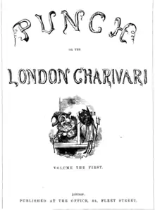 Punch was founded on 17 July 1841 by Henry Mayhew and wood-engraver Ebenezer Landells, on an initial investment of £25. It was jointly edited by Mayhew and Mark Lemon. It was subtitled The London Charivari in homage to Charles Philipon's French satirical humour magazine Le Charivari.[1] Reflecting their satiric and humorous intent, the two editors took for their name and masthead the anarchic glove puppet, Mr. Punch, of Punch and Judy; the name also referred to a joke made early on about one of the magazine's first editors, Lemon, that "punch is nothing without lemon". Mayhew ceased to be joint editor in 1842 and became "suggestor in chief" until he severed his connection in 1845. The magazine initially struggled for readers, except for an 1842 "Almanack" issue which shocked its creators by selling 90,000 copies. In December 1842 due to financial difficulties, the magazine was sold to Bradbury and Evans, both printers and publishers. Bradbury and Evans capitalised on newly evolving mass printing technologies and also were the publishers for Charles Dickens and William Makepeace Thackeray.