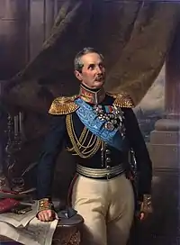 He fought at the Battle of Leipzig and the Battle of Borodino.[1] In March 1814, Alexander I was concerned for the safety of his brothers Nicholas and Constantine, who were involved in the occupation of Paris. He dispatched Kleinmichel to warn them and advise them to return to Basel. After succeeding in this, Kleinmichel was made Aide-de-Camp to the Tsar. The event also brought him to the attention of the future Tsar Nicholas I[1]