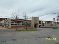 Pyramid Motors is a historic automobile showroom building located at Lynchburg, Virginia, United States. It is a one-story building with a yellow brick façade with contrasting red-brick details constructed in 1937. The building presented, like the Lincoln-Zephyr that the dealership sold, a streamlined, "modern" appearance in the Art Deco style.[3]