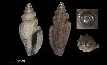 | Shell (with protoconch) of Pyrgocythara mairelae | |