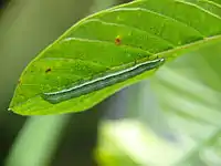 Larva green to reddish brown, mottled with yellowish, and dotted with black; dorsal line dark, white edged; subdorsal lines fine, yellowish white; lateral lines white or yellow; head pale brown. The larvae feed on Ononis, fireweed and Honckenya peploides, but also deciduous trees, shrubs and other herbaceous plants.[2]