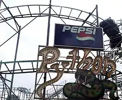 The Python was a D.P.V. Rides designed Zyklon-style steel roller coaster. It operated from 1996 to 1999 at Splash Zone Water Park, but was relocated to Coney Island at the end of the 1999 season. Following Coney Island's removal of all their amusement rides in 2019, the Python was sold to an independent ride operator - Kissel Entertainment, who refurbished the coaster and began touring with it in 2023.[1]