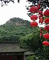 The park is referred to as 'The Northeast Pearl'. The name Qianshan literally means 'Thousand mountains'. This is actually an abbreviation of the full name, Thousand Lotus Flower Mountains (Chinese: ; pinyin: qiān duǒ liánhuā shān).[2] According to legend, a long time ago the four corners of the sky collapsed. The Goddess Nüwa wanted to save the people living below so she patched up the sky with stones. One stone was accidentally dropped to the ground where is splashed, throwing the earth into thousands of peaks in the shape of a lotus blossom. Thus Nüwa created Qianshan.[3] The park area of 44 square kilometres,[4] is filled with both Buddhist and Taoist temples, monasteries and nunneries. Here is one of few locations where both religions are found sharing the same site. Among the peaks, a naturally wrought statue of the Buddha stands 70 meters high. It is claimed to be largest naturally occurring image of Maitreya Buddha in the world.