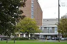 The buildings at Queen's vary in age from Summerhill, which opened in 1839, to Mitchell Hall, which opened in 2018.[47][48] Grant Hall, completed in 1905, is considered the university's most recognizable landmark. It is named after Reverend George Munro Grant, who served as Queen's seventh principal. The building is used to host concerts, lectures, meetings, exams, and convocations.[44] Two buildings owned and managed by the university have been listed as National Historic Sites of Canada. The Kingston General Hospital is the oldest operating public hospital in Canada.[49] The Roselawn House, which is east of the west campus, is the core component of the university's Donald Gordon Centre.[50][51]