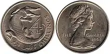 A 1966 Gambian four-shilling coin depicting the Queen of The Gambia