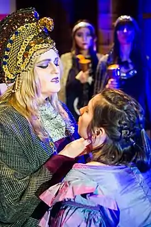 "Der Hölle Rache kocht in meinem Herzen" ("Hell's vengeance boils in my heart"), commonly abbreviated "Der Hölle Rache", is an aria sung by the Queen of the Night, a coloratura soprano part, in the second act of Mozart's opera The Magic Flute (Die Zauberflöte). It depicts a fit of vengeful rage in which the Queen of the Night places a knife into the hand of her daughter Pamina and exhorts her to assassinate Sarastro, the Queen's rival, else she will disown and curse Pamina.