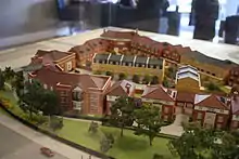 A large area of the site was demolished in the late 1980s for a large residential development named "Brackenbury Village". Housing was shared between personnel and British families.[11] The Children's Welfare and Family Services Centre was built in 1988 by Kier Construction. The building incorporated separate sections for children and families.[27] Among other recreational facilities, two squash courts were built in 1989,[28] and a baseball diamond and field house were built in 1995.[29] Dugouts were also built nearby the following year.[30]
