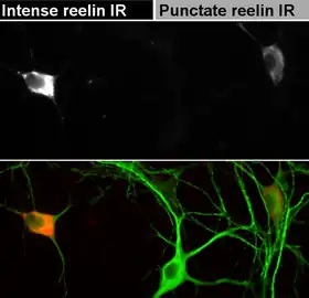 - ↑ Heinrich C, Nitta N, Flubacher A, Müller M, Fahrner A, Kirsch M, Freiman T, Suzuki F, Depaulis A, Frotscher M, Haas CA (April 2006). "Reelin deficiency and displacement of mature neurons, but not neurogenesis, underlie the formation of granule cell dispersion in the epileptic hippocampus". The Journal of Neuroscience. 26 (17): 4701–13. doi:10.1523/JNEUROSCI.5516-05.2006. PMC 6674063. PMID 16641251.
