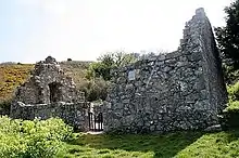 The ruins have a doorway in the northeast wall which would have originally held a strong timber door, and round-headed windows in the east and west gables.