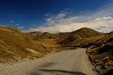 The terrain is rugged and the road has not been built to any particular engineering standard, but is there to give maintenance vehicles access to the power pylons.[1] The road is open to the public from 26 December until Easter Monday each year.[2] When using a GPS, it may give Rainbow Road as the most direct link from Christchurch to the city of Nelson, as it is the shortest link, and this sometimes catches out tourists unaware of the conditions in New Zealand's back-country.[3] Under good conditions, it takes a 4WD vehicle about three hours to drive the 112 km.[2] Island Saddle is the highest point on the route at 1,347 metres (4,419 ft), and this is New Zealand's highest public road.[2] Part of the road crosses private land at the Rainbow Station, and the leaseholder charges an access fee of NZ$40 per 4WD, NZ$20 per motorbike, and NZ$5 per mountain bike.[2] Access to the road outside of the season can be arranged through the farm manager at Rainbow Station.[4][5]