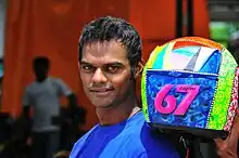 Rajini Krishnan (born July 13, 1980) is an Indian motorcycle racer. He became national road racing champion in 2003 and went on to win eight more National titles till 2011[1] and, after 10 years he won the 2021 National title again on 05/02/2022, as the championship was delayed due to COVID 19. In 2013, he became the first Indian winner of an international road racing event with his victory at the Losail Asian Road Racing Championship in Qatar.[2] He won the Malaysian Superbike championship (Open class) in 2015.