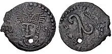 Some of his coins, discovered in the ruins of the Palace of Kala-i Kakhkakha I in Bunjikat, are now in the National Museum of Antiquities of Tajikistan. Some of his coins, in some cases bearing the symbol of a Christian equilateral cross, were also found in the area of Chach, together with another ruler named Satachari.[3]