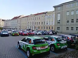 Rally cars in parc fermé on the 2019 rally at Tartu city centre.