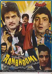 Ranbhoomi (transl.Battlefield) is a 1991 Hindi-language action film, produced by Vijay Sinha under the V.K.S. Films banner and directed by Deepak Sareen. It stars Jeetendra, Rishi Kapoor, Shatrughan Sinha, Dimple Kapadia and Neelam, with music composed by Laxmikant–Pyarelal.[1][2]