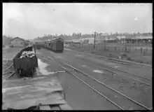 In 1908[10] a new sawmill and treatment works were built to produce Powellised timber, which was claimed to resist rot and insect damage.[23] They had rights to fell 4,402 acres (1,781 ha)[24] of rimu, mataī, kahikatea, māpou, kāmahi[25] and hard beech forest,[26] The works were connected to that and the railway by a tramway,[10] which extended some 6 mi (9.7 km) towards Mount Ruapehu, the total cost being about £30,000;[27] a 1910 photo showed a group on horses following a tramline on the way to the mountain.[28] A 1913 plan was for 7 mi (11 km) of tramway.[29] The works was expanded in 1909[30] and 1911,[31] but a 1915 report cast doubt on the claims for the process[32] and, after the works burnt down in the Raetihi Forest fire of 1918,[33] the company went into liquidation.[34] A 1930 report on wooden paving in Auckland noted how well the Powellised timber had lasted.[35]