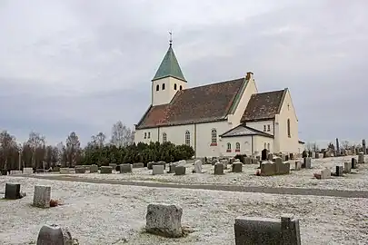 Raufoss Church (Norwegian: Raufoss kirke) is a parish church of the Church of Norway in Vestre Toten Municipality in Innlandet county, Norway. It is located in the town of Raufoss. It is the church for the Raufoss parish which is part of the Toten prosti (deanery) in the Diocese of Hamar. The white, stone church was built in a long church design in 1939 using plans drawn up by the architect Henry Bucher. The church seats about 450 people.[1][2]