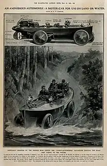 The Ravailler was a French automobile manufactured only in 1907. Possibly the first successful amphibious car, it was a 20 hp vehicle complete with steel hull, chain drive, and disc wheels with solid tires.