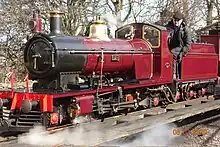 A 0-4-0T built by Sir Arthur Heywood in 1896 for the Duke of Westminster's Eaton Hall Railway.[1] It came to Ravenglass in 1916 and left in 1919. Few photographs survive of it working in Cumbria, however the remains of the locomotive returned to the railway in 1982 after spells at Llewellyn's Miniature Railway, Southport and the Fairbourne Railway, Wales. In 1992, the R&ER Heritage Group formed, with an aim to restore the locomotive to original condition. After many years of fundraising and work, Katie’s rebuild was completed in 2017. She is usually on display in the railway’s museum at Ravenglass, but is frequently steamed for special events and 'driver for a fiver' days in the summer. She has also made several visits away from Ravenglass since her return to steam, including the Beamish Open Air Museum, the Fairbourne Railway, and the Kirklees Light Railway.