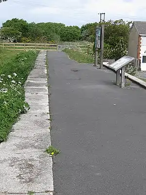 When the Scarborough & Whitby Railway Company failed to have a station house built, as requested by the NER, the latter had the station closed on 2 March 1895, although some excursion trains still stopped there.[8] After a station house was built, the station was reopened on 1 April 1896.[9] Originally there was only a single platform and a siding, but a second platform was added in 1908.[8] Ravenscar was the smallest equipped passing loop on the line, being able to pass trains consisting of 14 wagons, a brake van and the engine.[10]